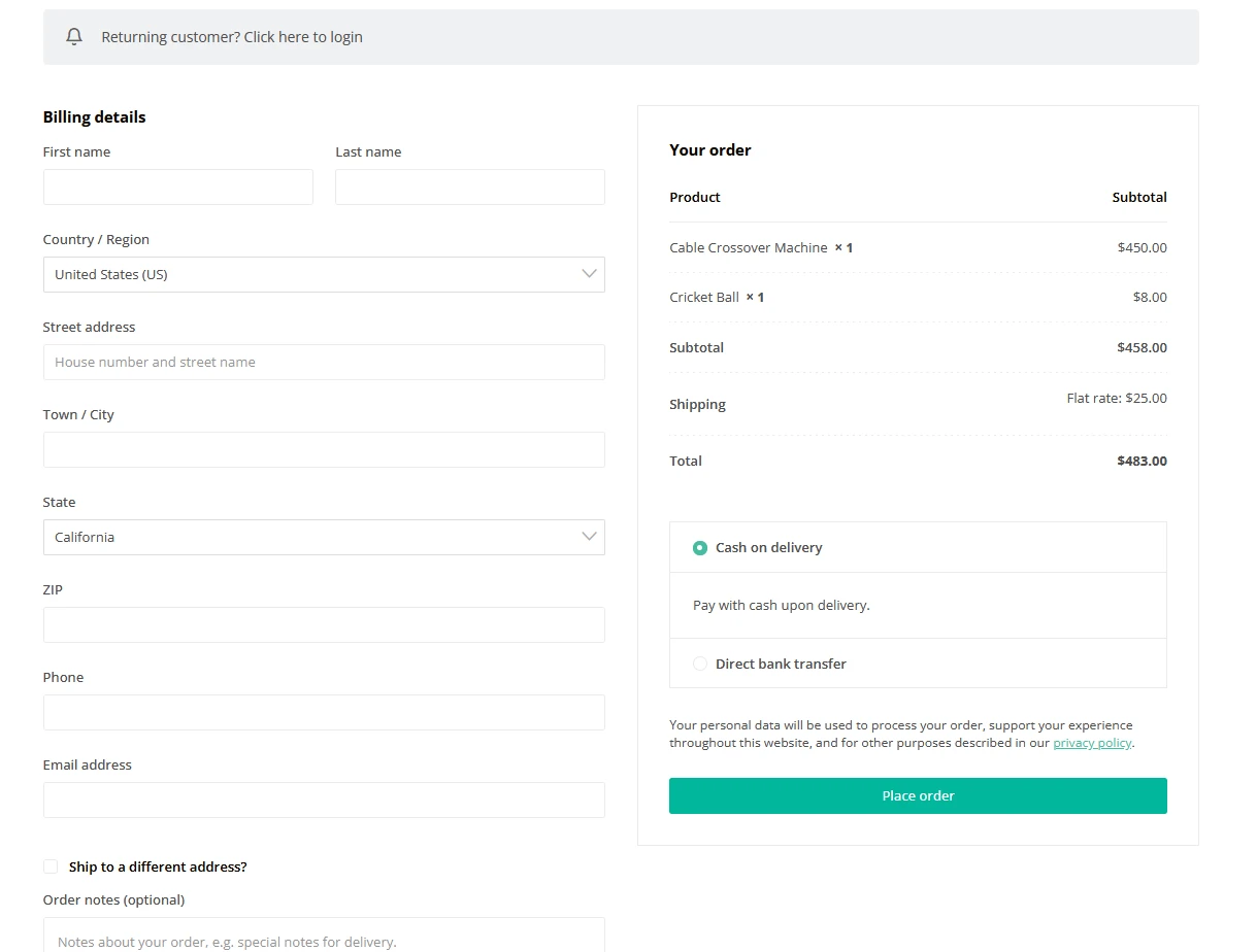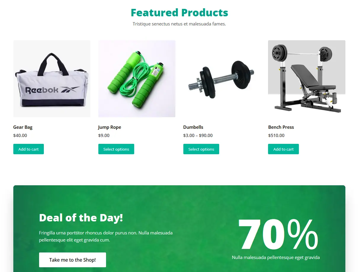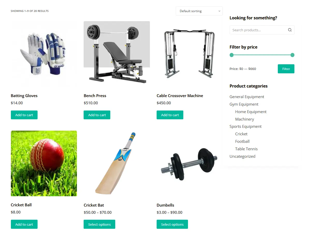 This is an e-commerce website for a fictional company, designed to sell sports goods. It was built using the WooCommerce plugin and the Blocksy Theme on WordPress. Users can add products to carts and checkout.